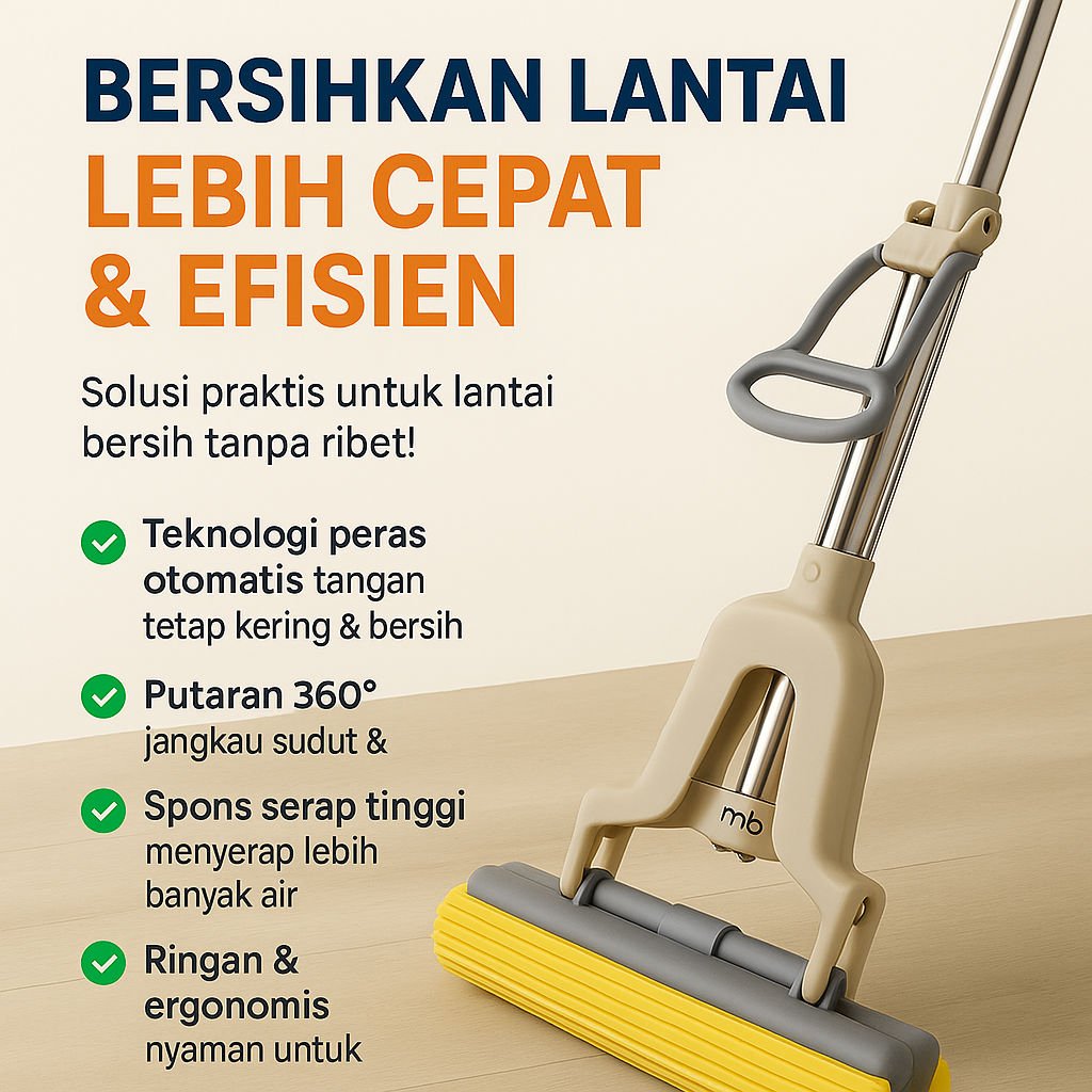 Alat pel lantai modern akan mempermudah anda membersihkan lantai, mengeringkan lantai dengan cepat berkat teknologi peras otomatis.